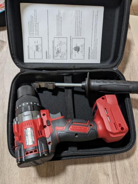 - BRUSHLESS MOTOR & 150 NM MAX TORQUE: This cordless drill with brushless motor 150 NM max torque. For brushless motors no need to change the carbon brush, which is more durable. Moreover, no sparks are generated during use. It’s safer and no noise, which is more comfortable to use, it is high-performance, and more durable.